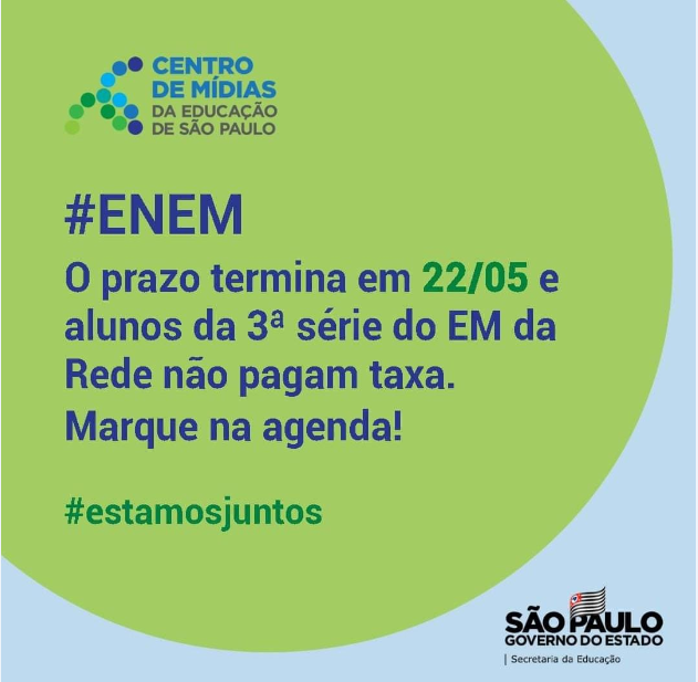 O CMSP (CENTRO DE MÍDIAS DA EDUCAÇÃO DE SÃO PAULO) continuará oportunamente com aulas especiais sobre o ENEM.